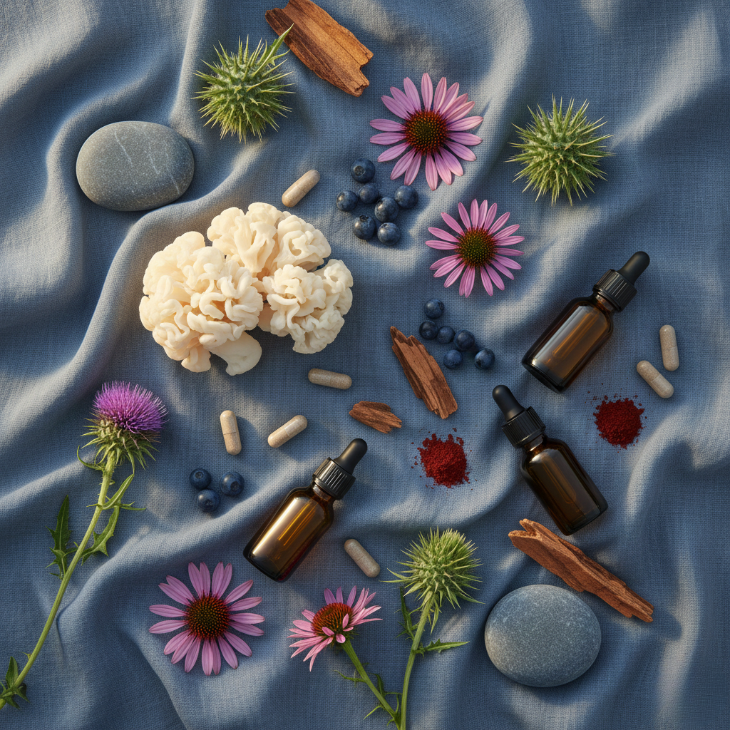 Venta online de productos botánicos y adaptógenos en cápsulas y tinturas madre, complementada con programas y recursos de bienestar emocional.