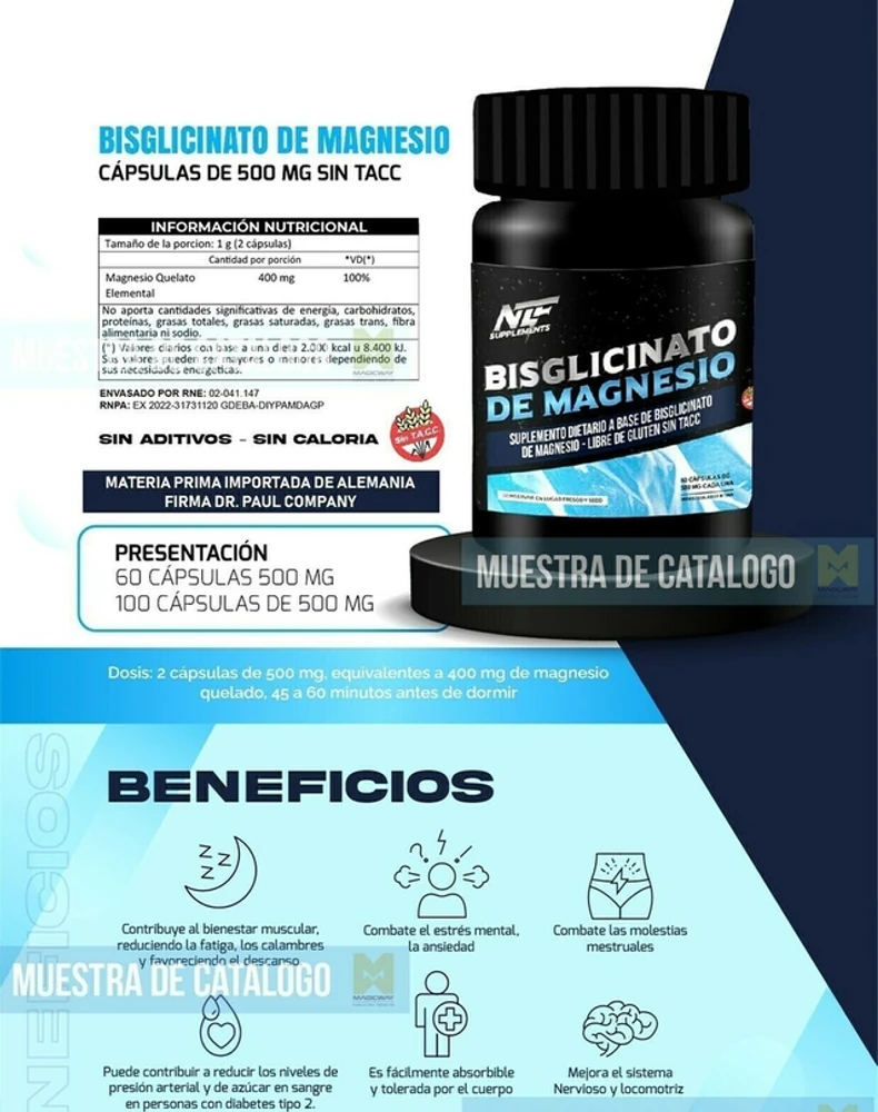 Presentamos el Magnesio Bisglicinato, una forma de magnesio altamente biodisponible y bien tolerada, diseñada específicamente para promover la relajación del sistema nervioso, mejorar el descanso nocturno y optimizar el bienestar muscular. Este suplemento es perfecto para quienes buscan una solución eficaz y natural para aliviar tensiones físicas y mentales.